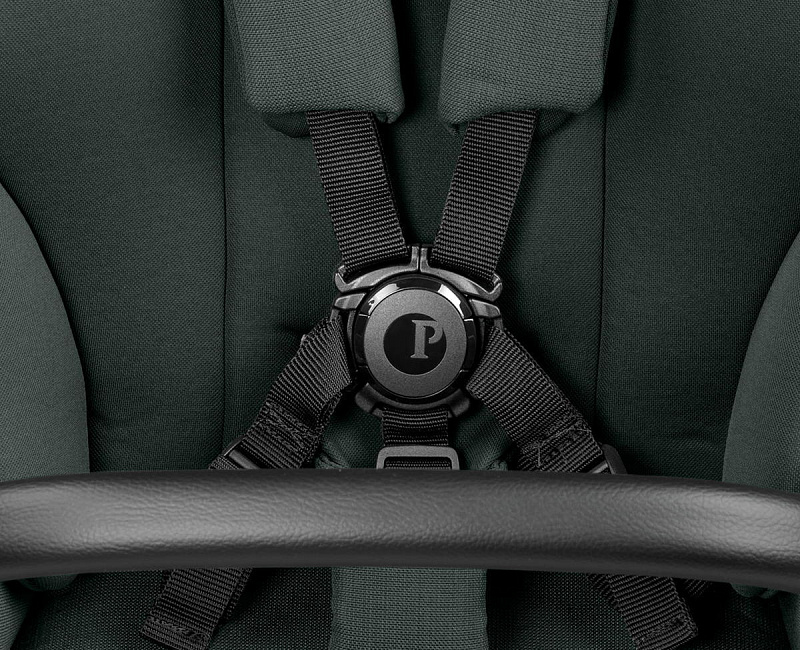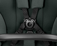 Просторное сиденье оснащено пятиточечными ремнями безопасности с мягкими накладками и системой защелкивания, расстегнуть которую могут только родители.