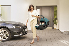 Устанавливается штатным ремнем или на поворотную базу Britax Roemer, а также совместима с большинством прогулочных колясок.