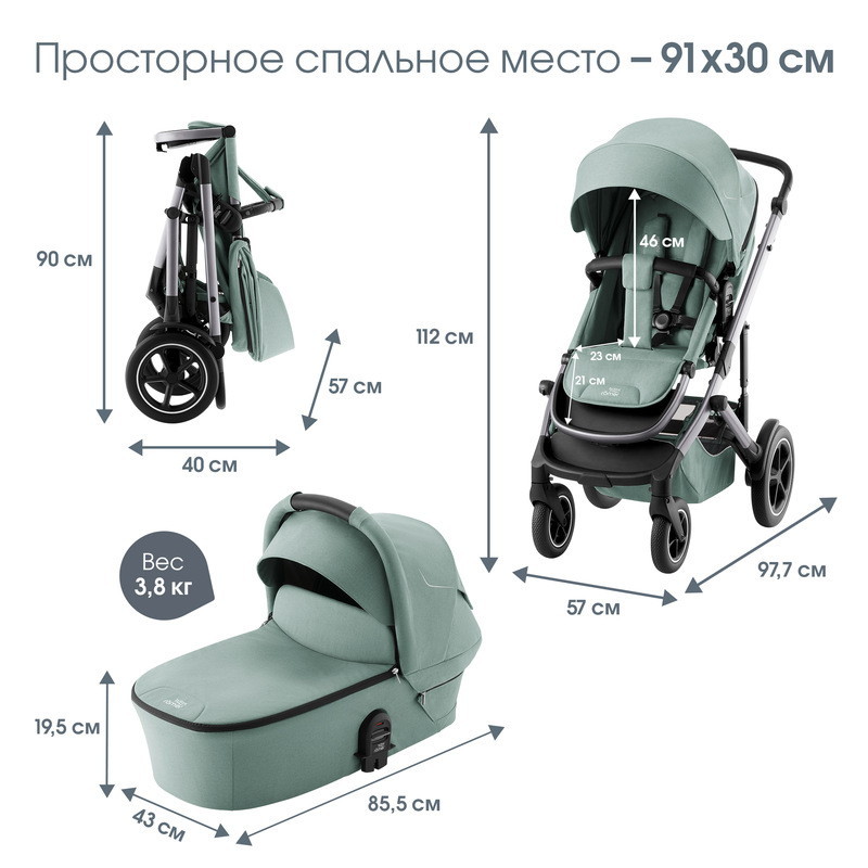 Коляска 3 в 1 Britax Roemer Smile 5Z + автокресло Baby-Safe PRO Jade Green / Jade GreenНет оценокХарактеристики