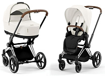 Коляска 3 в 1 Cybex Priam IV Chrome Brown complete и автокресло Aton B2 i-Size Steel Grey Off White