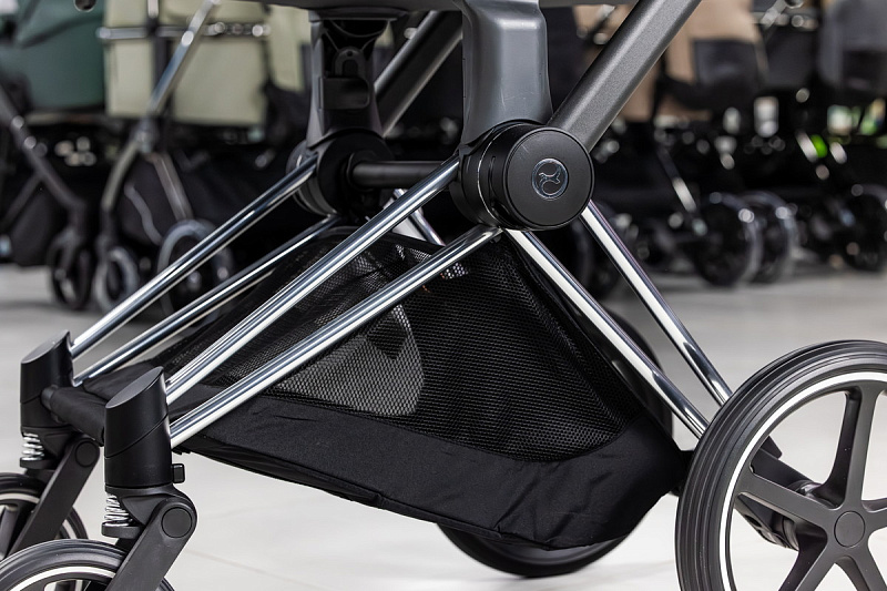 Безопасность вашего малыша обеспечивается пятиточечным ремнем безопасности и регулируемой подножкой с тремя положениями. Каркас коляски выполнен из высококачественного и прочного, но легкого алюминия, обеспечивая стабильность и прочность. Благодаря небольшой ширине шасси, коляска легко проходит через любые дверные проемы и помещается в лифт. Кроме того, шасси компактно складывается и имеет двухколесный режим, что позволяет преодолевать препятствия с легкостью. Передние колеса поворачиваются на 360 градусов, придавая коляске Priam невероятную маневренность. Сайбекс Приам 4 имеет очень большую корзину для покупок, выдерживающий вес до 5 кг. Вместительная корзина для покупок раскладывается, когда вам нужно больше места во время поездки или похода по магазинам.