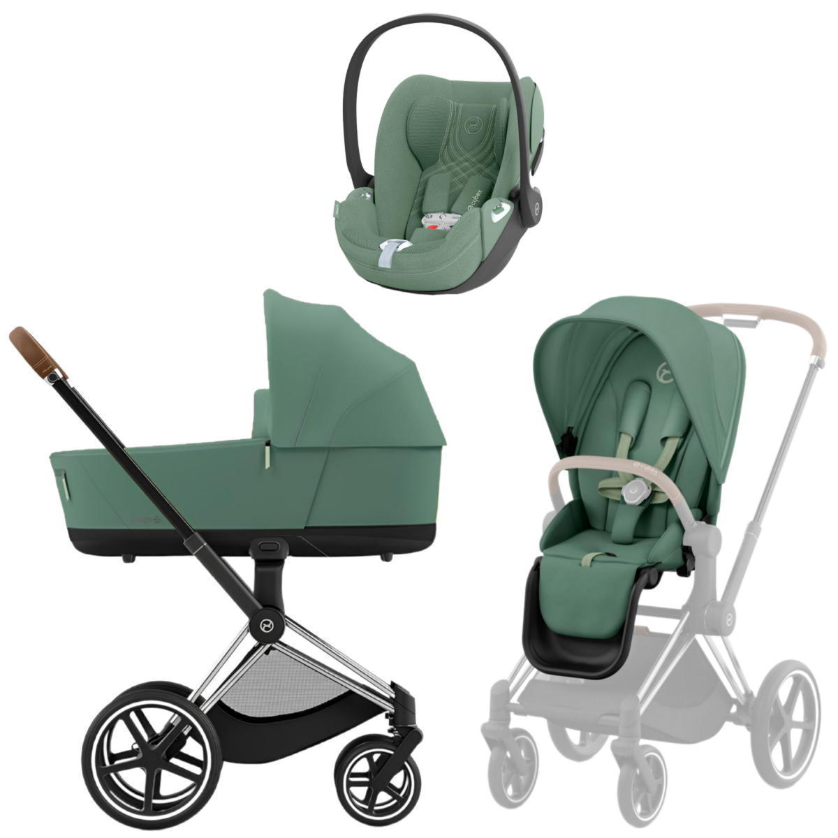 Коляска 3 в 1 Cybex Priam IV Chrome Brown complete и автокресло Cloud T i-Size Leaf Green Plus Leaf Green