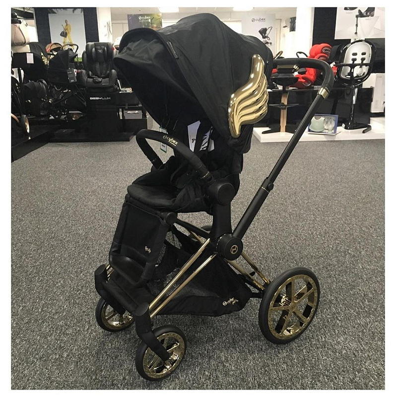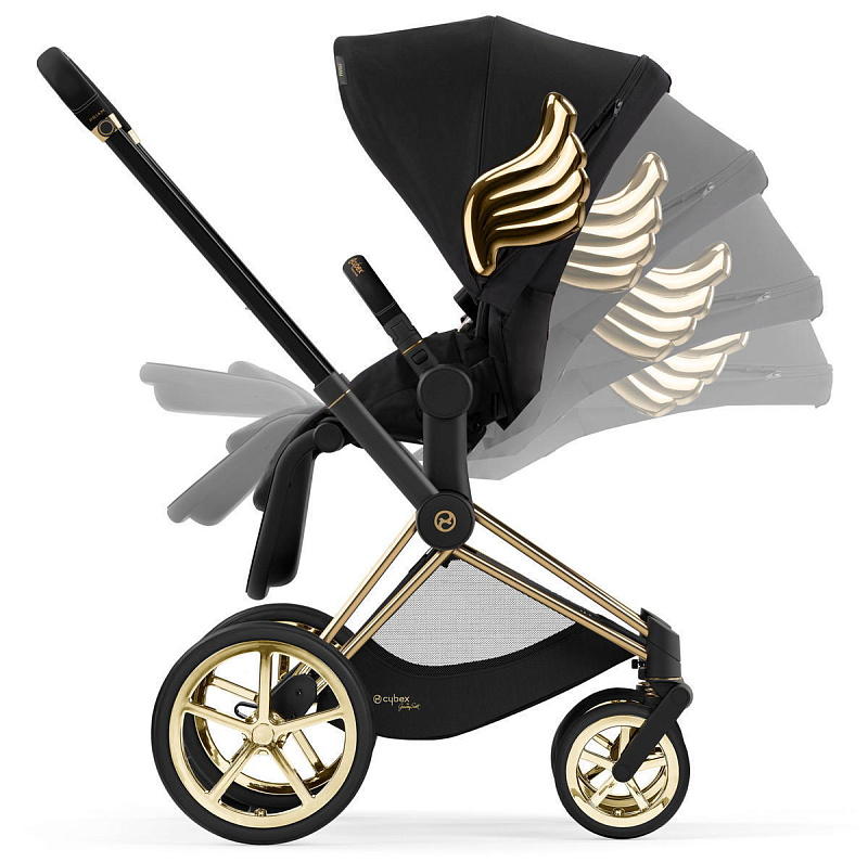 Одной из таких коллекций является Cybex Priam by Jeremy Scott. Джереми Скотт - известный дизайнер, чьи работы революционизируют современные модные тенденции. Его дизайн коляски с золотыми крыльями олицетворяет чистоту и искренность детей. Коляска выполнена в черном цвете с золотыми акцентами на раме и спицах, что придает ей неповторимый стиль.