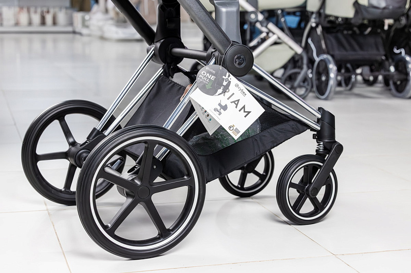 Безопасность вашего малыша обеспечивается пятиточечным ремнем безопасности и регулируемой подножкой с тремя положениями. Каркас коляски выполнен из высококачественного и прочного, но легкого алюминия, обеспечивая стабильность и прочность. Благодаря небольшой ширине шасси, коляска легко проходит через любые дверные проемы и помещается в лифт. Кроме того, шасси компактно складывается и имеет двухколесный режим, что позволяет преодолевать препятствия с легкостью. Передние колеса поворачиваются на 360 градусов, придавая коляске Priam невероятную маневренность. Сайбекс Приам 4 имеет очень большую корзину для покупок, выдерживающий вес до 5 кг. Вместительная корзина для покупок раскладывается, когда вам нужно больше места во время поездки или похода по магазинам.