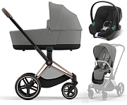 Коляска 3 в 1 Cybex Priam IV Rosegold complete и автокресло Aton B2 i-Size Volcano Black Mirage Grey