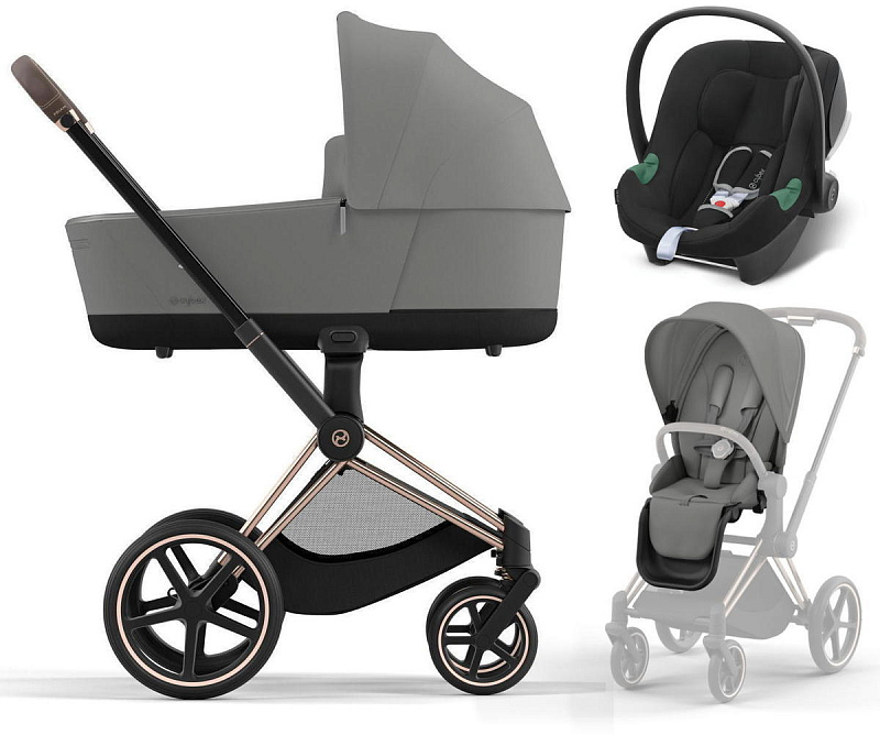 Cybex Priam IV 3 в 1 (Сайбекс Приам 4) является самым полным комплектом немецкой гибридной универсальной премиальной коляски, который удовлетворит все изысканные потребности с первых дней жизни вашего малыша до достижения им 4-летнего возраста. Данная модель коляски Priam IV имеет шасси модели в расцветке Rosegold (рама розовое золото, бампер и ручка в коричневом оттенке) и упакована в одну коробку, в комплекте к коляске идет автокресло Aton B2 i-Size Volcano Black.