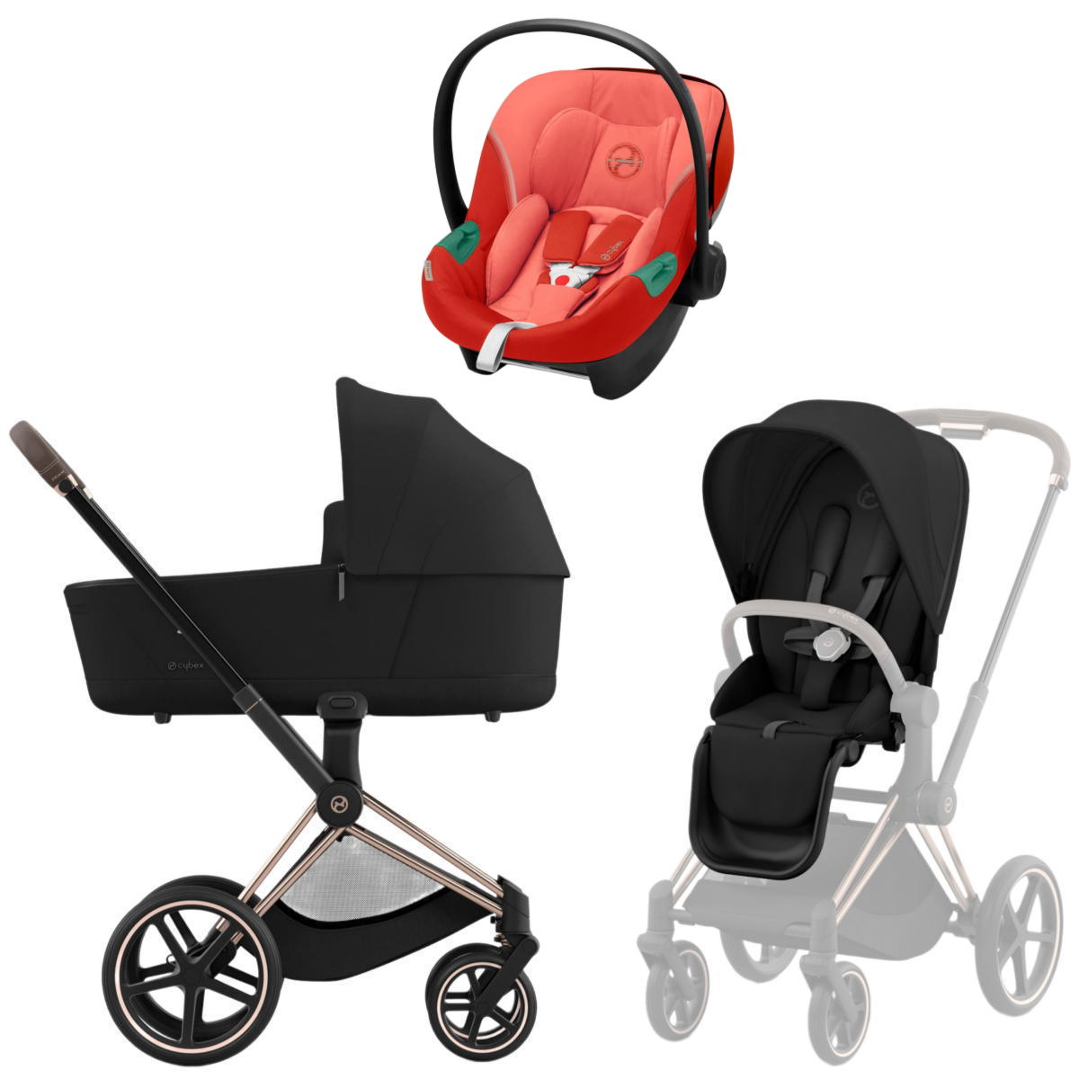 Коляска 3 в 1 Cybex Priam IV Rosegold complete и автокресло Aton S2 i-Size Hibiscus Red Sepia Black