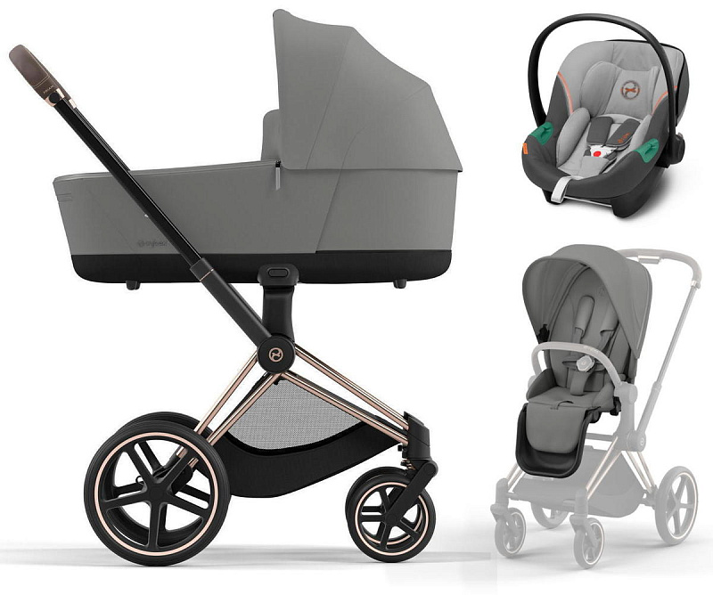 Cybex Priam IV 3 в 1 (Сайбекс Приам 4) является самым полным комплектом немецкой гибридной универсальной премиальной коляски, который удовлетворит все изысканные потребности с первых дней жизни вашего малыша до достижения им 4-летнего возраста. Данная модель коляски Priam IV имеет шасси модели в расцветке Rosegold (рама розовое золото, бампер и ручка в коричневом оттенке) и упакована в одну коробку, в комплекте к коляске идет автокресло Aton S2 i-Size Lava Grey.