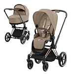 Коляска 3 в 1 Cybex Priam IV Rosegold complete и автокресло Aton S2 i-Size Moon Black Cozy Beige
