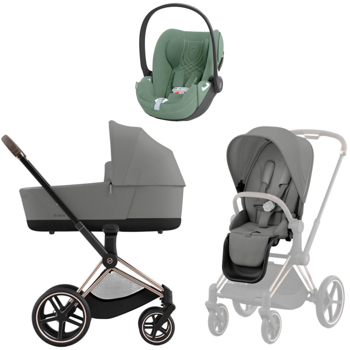 Коляска 3 в 1 Cybex Priam IV Rosegold complete и автокресло Cloud T i-Size Leaf Green Plus Mirage Grey