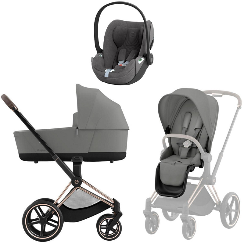 Коляска 3 в 1 Cybex Priam IV Rosegold complete и автокресло Cloud T i-Size Mirage Grey Plus Mirage Grey