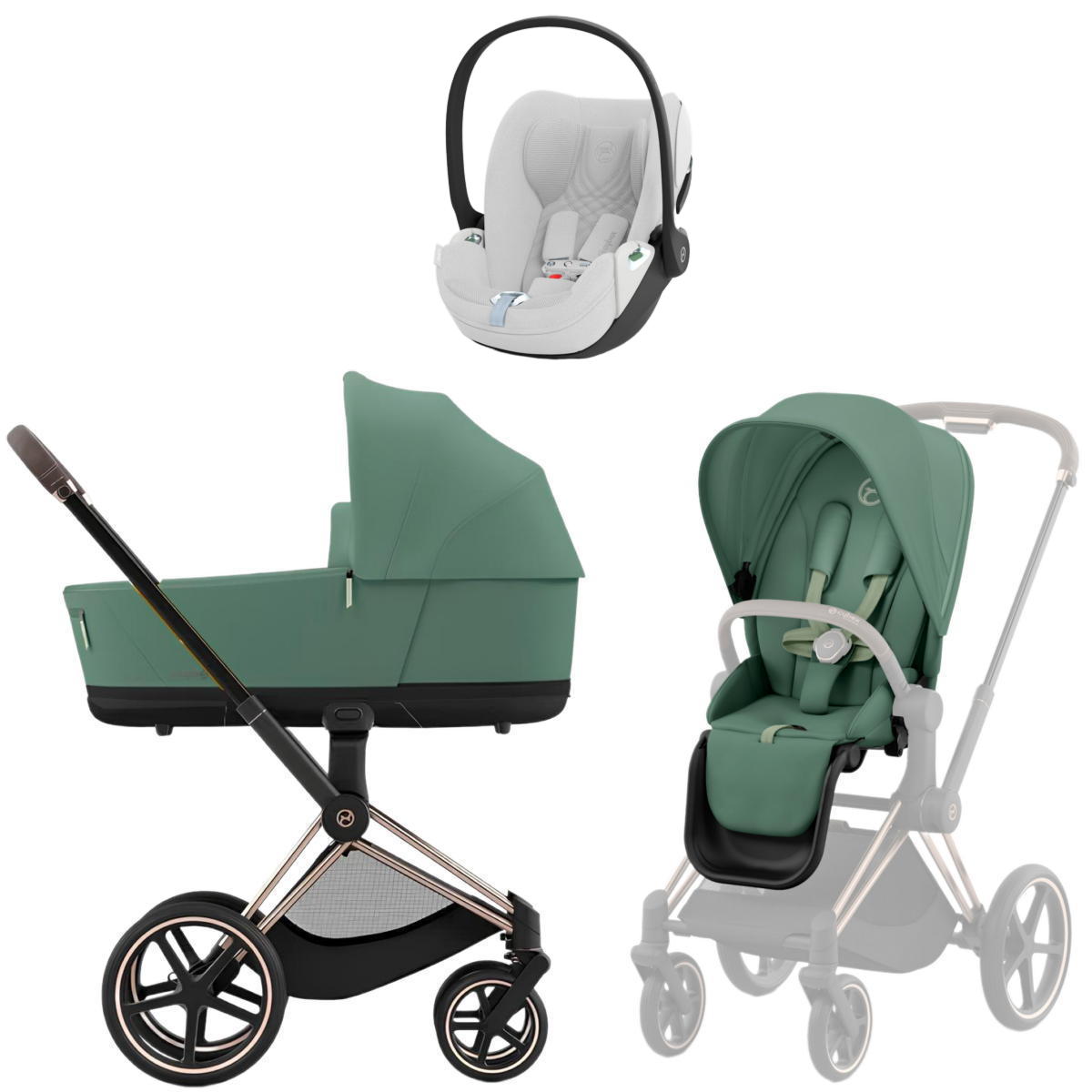 Коляска 3 в 1 Cybex Priam IV Rosegold complete и автокресло Cloud T i-Size Platinum White Plus Leaf Green
