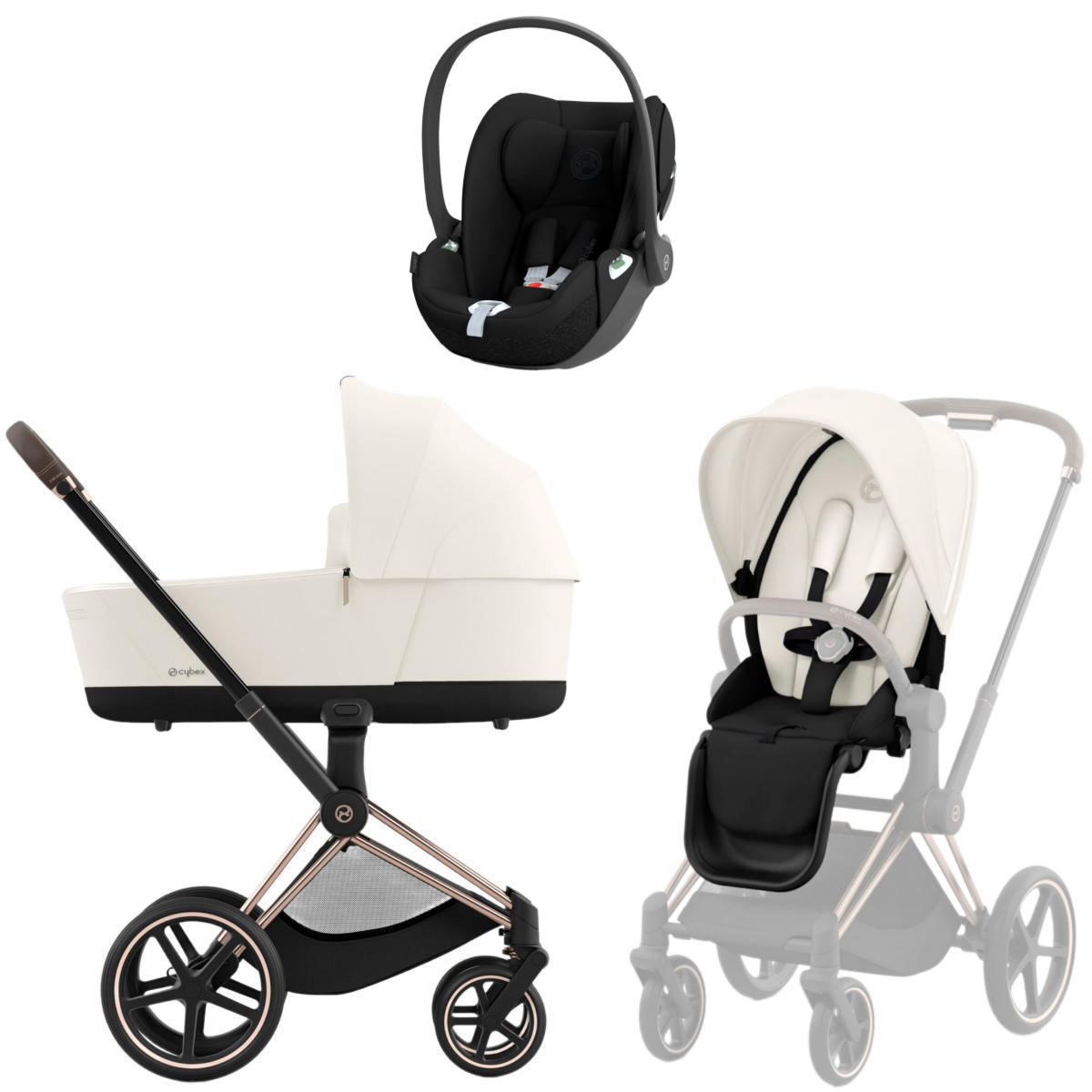 Коляска 3 в 1 Cybex Priam IV Rosegold complete и автокресло Cloud T i-Size Sepia Black Off White