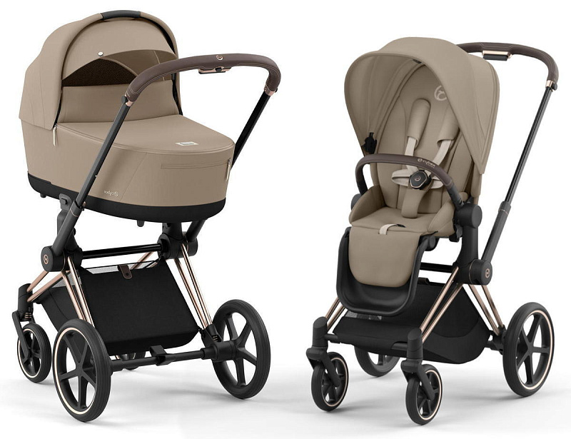 Коляска 3 в 1 Cybex Priam IV Rosegold и автокресло Cloud G i-Size Moon Black Plus Cozy BeigeНет оценокХарактеристики