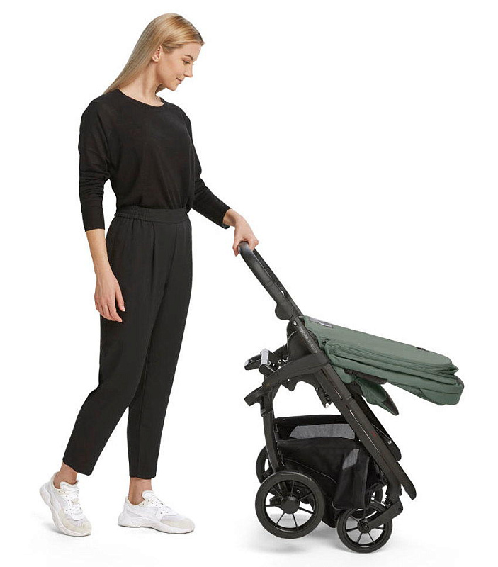 Шасси весом всего 5,5 кг обеспечивает легкость в перемещениях и удобную транспортировку. В сложенном виде невероятно компактное, сохраняет вертикальное положение, не касаясь ручкой земли. Раскладывается и складывается одной рукой. Легко проезжает узкие места благодаря шасси шириной всего 50 см. Обновленная корзина для вещей обеспечивает удобный доступ с любой стороны.