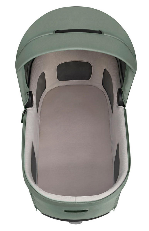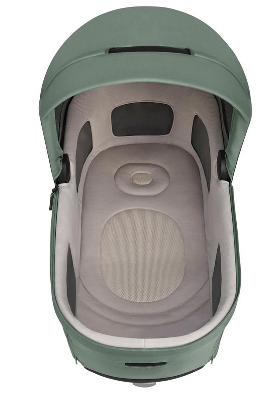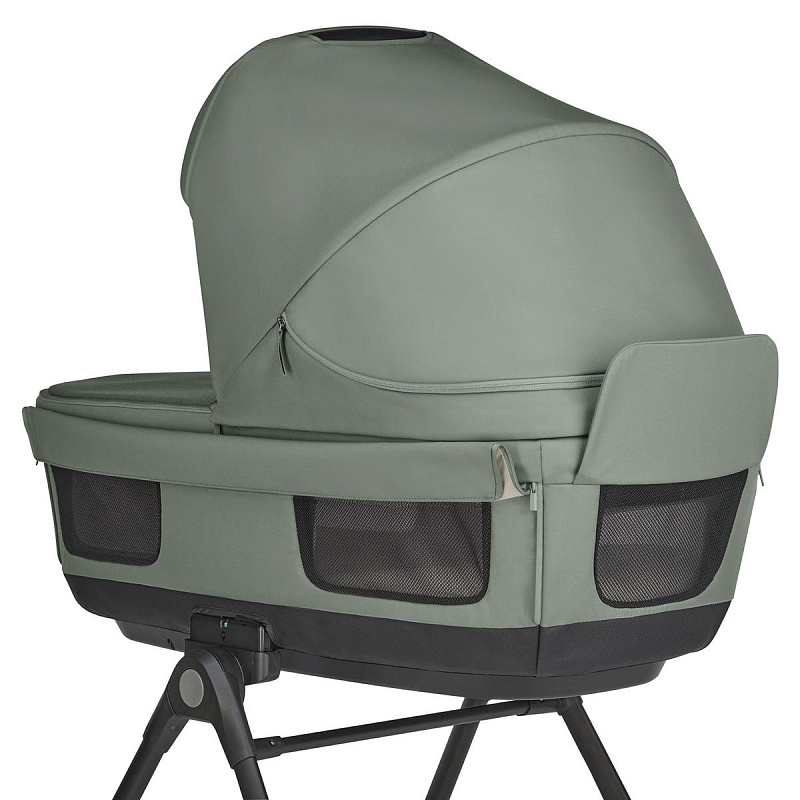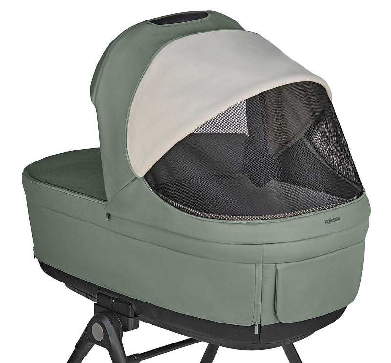 Регулируемый наклон спинки люльки гарантирует удобное положение малышу после кормления и позволяет наблюдать за окружающим миром во время бодрствования. Дно люльки оснащено системой вентиляции для регулирования воздухообмена и температуры внутри люльки. Вентиляционное окошко в капюшоне обеспечивает циркуляцию воздуха, благодаря чему внутри люльки сохраняется прохлада в жаркие дни.