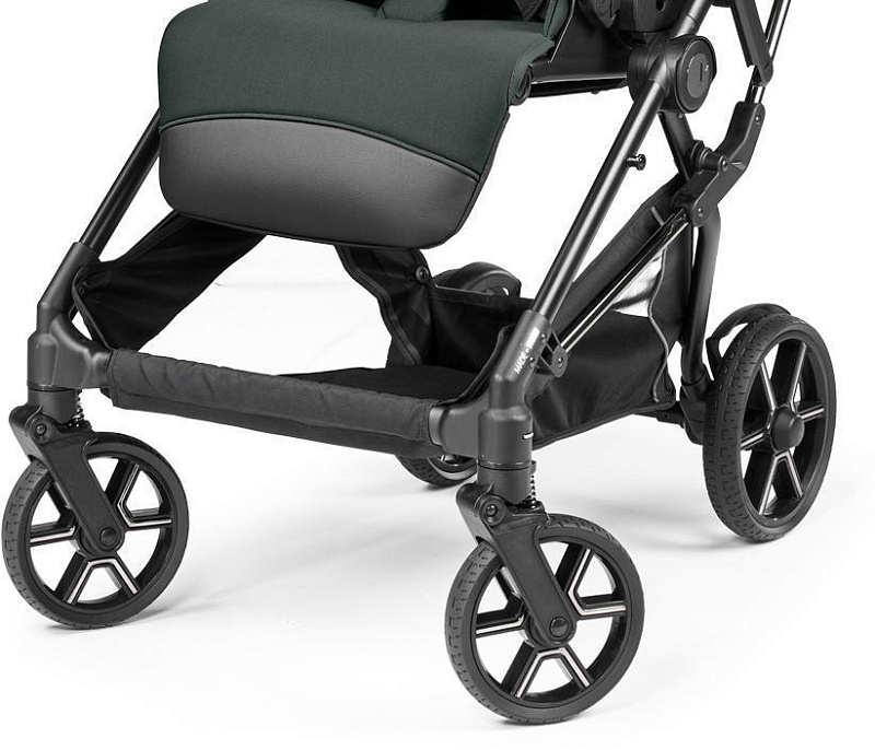 Поворотные передние колеса позволяют без труда маневрировать на городских улицах, в лифтах и торговых центрах. Открытая пружинная подвеска и шарикоподшипники обеспечивают плавных ход колес. Централизованный тормоз расположен на задней раме.