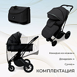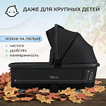 Подножка прогулочного блока регулируется в 3 положениях и раздвигается в длину, чтобы ребенку было максимально комфортно. Коляска поставляется в комплекте, который включает в себя шасси, прогулочный блок, люльку, дождевик, накидку на ножки и сумку-трансформер.