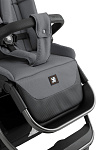 Подножка прогулочного блока регулируется в 3 положениях и раздвигается в длину, чтобы ребенку было максимально комфортно. Коляска поставляется в комплекте, который включает в себя шасси, прогулочный блок, люльку, дождевик, накидку на ножки и сумку-трансформер.