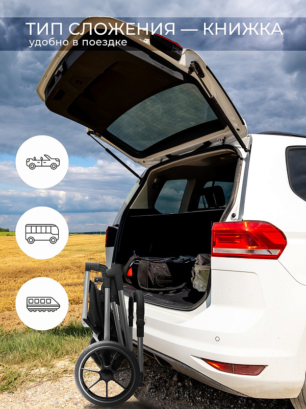 Подножка прогулочного блока регулируется в 3 положениях и раздвигается в длину, чтобы ребенку было максимально комфортно. Коляска поставляется в комплекте, который включает в себя шасси, прогулочный блок, люльку, дождевик, накидку на ножки и сумку-трансформер.