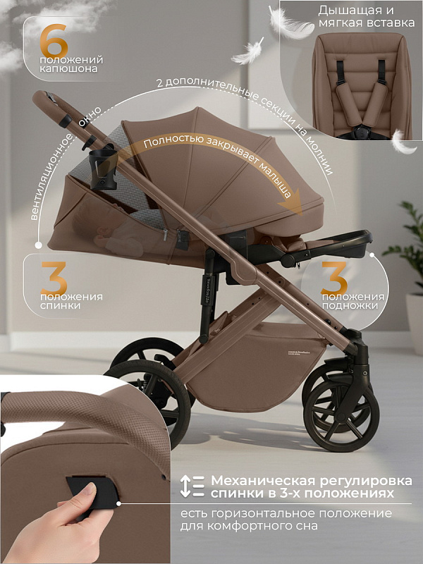 - Глубокий капюшон с защитой от ультрафиолета UV50 обеспечивает много тени для комфортного микроклимата, а скрытые секции полностью закроют малыша до самых ножек