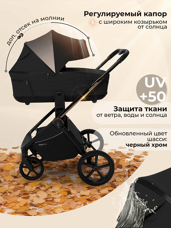 Уникальное термоактивное дно люльки поддерживает оптимальную температуру, позволяя вашему ребенку наслаждаться свежим воздухом и уютом даже в самые прохладные дни. Вентиляционные окошки для проветривания люльки оснащены утепленными вставками, которые легко отстегиваются при наступлении тепла, обеспечивая идеальный климат для вашего малыша. Обратите внимание на новые увеличенные колеса из высокомолекулярного полимера, аналогичных тем, что используются в кроссовках Nike. Эти колеса гарантируют отличную амортизацию и сцепление с различными покрытиями, что делает каждую прогулку плавной и комфортной. Даже на неровных поверхностях ваш малыш не почувствует ни малейшего дискомфорта, а родителям будет легко управлять коляской благодаря высокоэффективной амортизации как передних, так и задних колес.