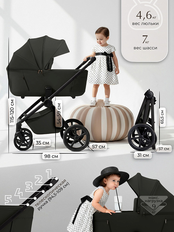 - Регулируемая телескопическая ручка позволяет настроить высоту под любые ростовые особенности родителей, обеспечивая интуитивное управление без лишних усилий. Колеса с водоотводящими протекторами обеспечивают надежное сцепление и уверенную проходимость по улицам, защищая от проскальзывания и предоставляя дополнительную безопасность.