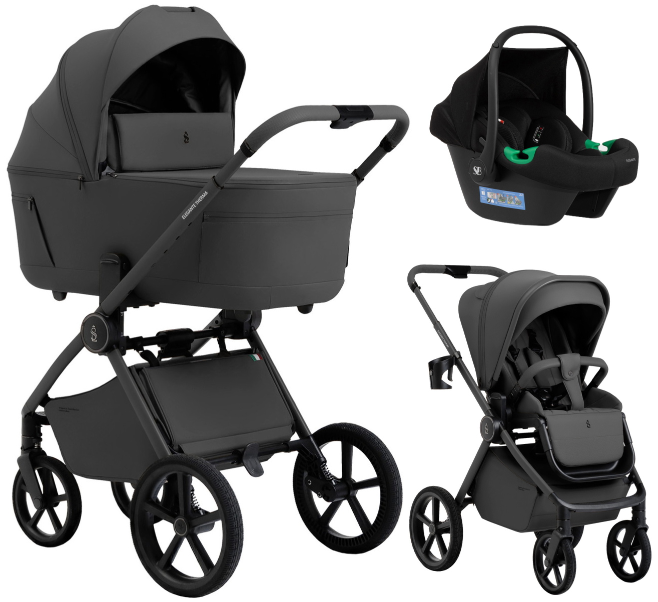 Коляска 3 в 1 Sweet Baby SBL Elegante Therma Colore + автокресло Elegante Plus Dark Grey