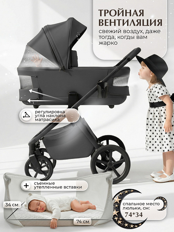 - Термоактивное дно люльки поддерживает оптимальную температуру и защищает от переохлаждения зимой и перегрева летом.