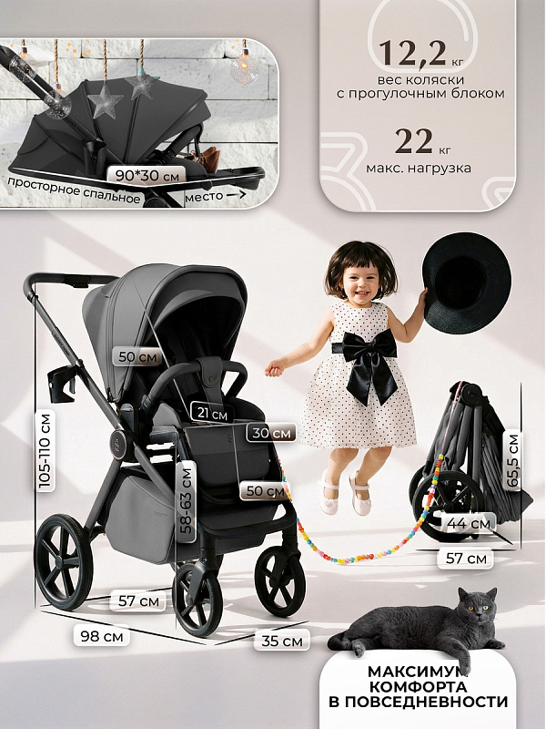 - Регулируемая телескопическая ручка позволяет настроить высоту под любые ростовые особенности родителей, обеспечивая интуитивное управление без лишних усилий. Колеса с водоотводящими протекторами обеспечивают надежное сцепление и уверенную проходимость по улицам, защищая от проскальзывания и предоставляя дополнительную безопасность.