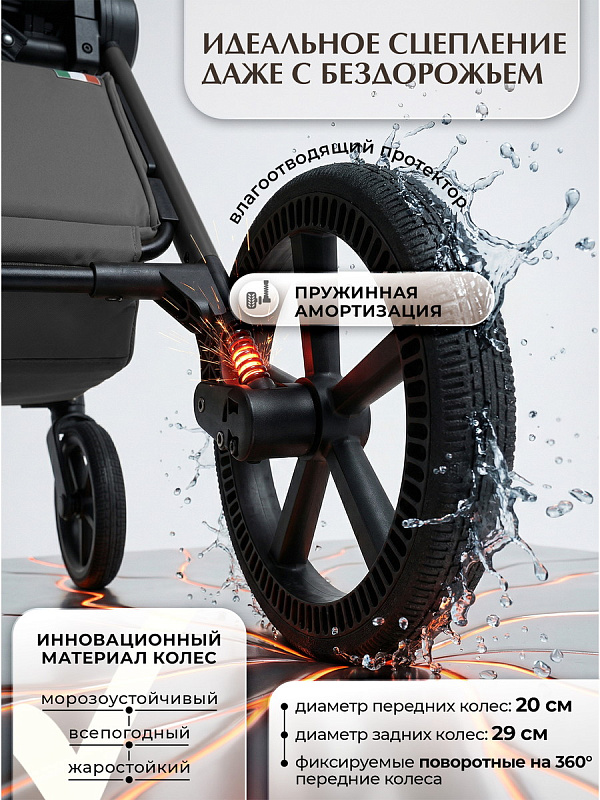 - Регулируемая телескопическая ручка позволяет настроить высоту под любые ростовые особенности родителей, обеспечивая интуитивное управление без лишних усилий. Колеса с водоотводящими протекторами обеспечивают надежное сцепление и уверенную проходимость по улицам, защищая от проскальзывания и предоставляя дополнительную безопасность.