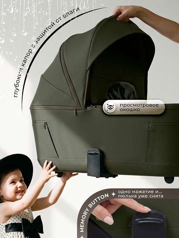 • Термоактивное дно люльки поддерживает оптимальную температуру и защищает от переохлаждения зимой и перегрева летом.