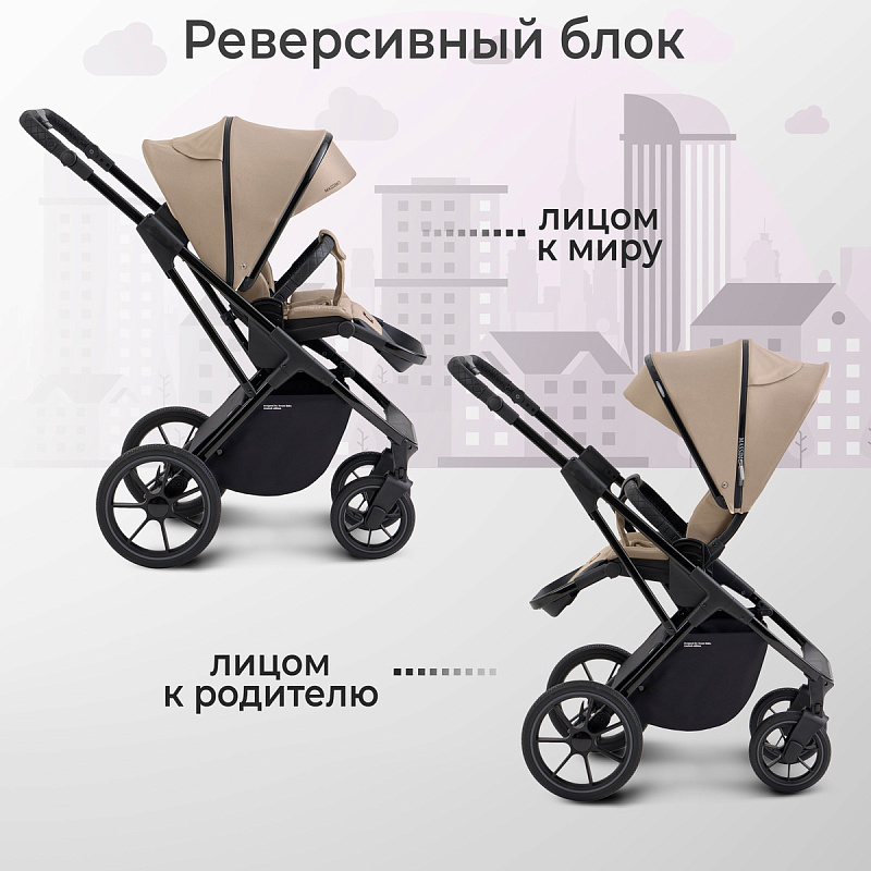 Механическая регулировка спинки доступна в трех положениях. Реверсивный блок позволяет вашему ребенку смотреть и на вас, и на окружающий мир.