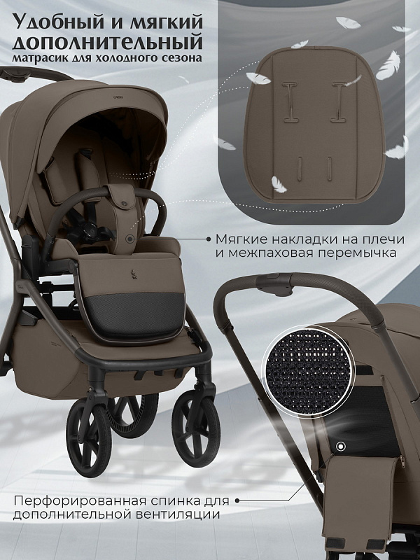 В комплекте — сумка для мамы, накидка на ножки, подстаканник, дождевик и москитная сетка, чтобы вы были готовы к любым условиям.