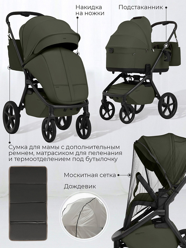 В комплекте — сумка для мамы, накидка на ножки, подстаканник, дождевик и москитная сетка, чтобы вы были готовы к любым условиям.