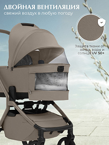 В комплекте — сумка для мамы, накидка на ножки, подстаканник, дождевик и москитная сетка, чтобы вы были готовы к любым условиям.