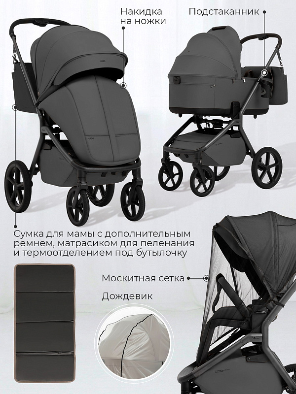 В комплекте — сумка для мамы, накидка на ножки, подстаканник, дождевик и москитная сетка, чтобы вы были готовы к любым условиям.