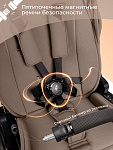Регулируемые магнитные ремни безопасности с мягкими накладками и бампер из экокожи обеспечивают максимальную защиту и комфорт. Накидка с доступом к ребенку с молнией по центру защищает в прохладную погоду