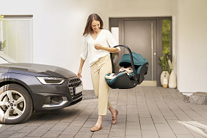 - Посадить и пристегнуть вашего малыша стало еще проще: когда автолюлька BABY-SAFE PRO установлена базу, просто поверните ее в сторону открытой двери автомобиля. Для максимального удобства кнопка фиксатора в BABY-SAFE PRO вращается вместе с люлькой, поэтому вы можете легко добраться до нее в любое время.