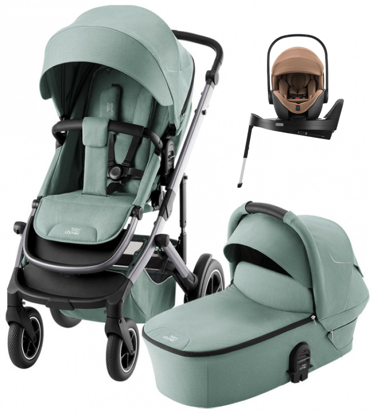 Коляска 4 в 1 Britax Roemer Smile 5Z и автокресло Baby-Safe PRO LUX Warm Caramel + Vario Base 5Z Jade Green