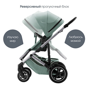 - Прогулочный блок поворачивается быстро и легко: ваш ребёнок может сидеть в коляске лицом вперёд и смотреть по сторонам, получая массу впечатлений, или лицом к вам, если ему пора отдохнуть: так вам будет легче успокоить и развлечь малыша.