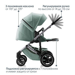 - Благодаря стильной ручке из мягкой на ощупь эко-кожи, вы всегда будете в тренде. Ручку можно отрегулировать под рост взрослого, чтобы любой член семьи мог прогуляться с этой стильной коляской, не пренебрегая комфортом.
