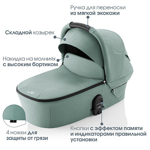 - При установке автолюльки на Britax Roemer в автомобиле или на прогулочной коляске отчетливо слышимый щелчок сообщает о том, что автокресло надёжно установлено.