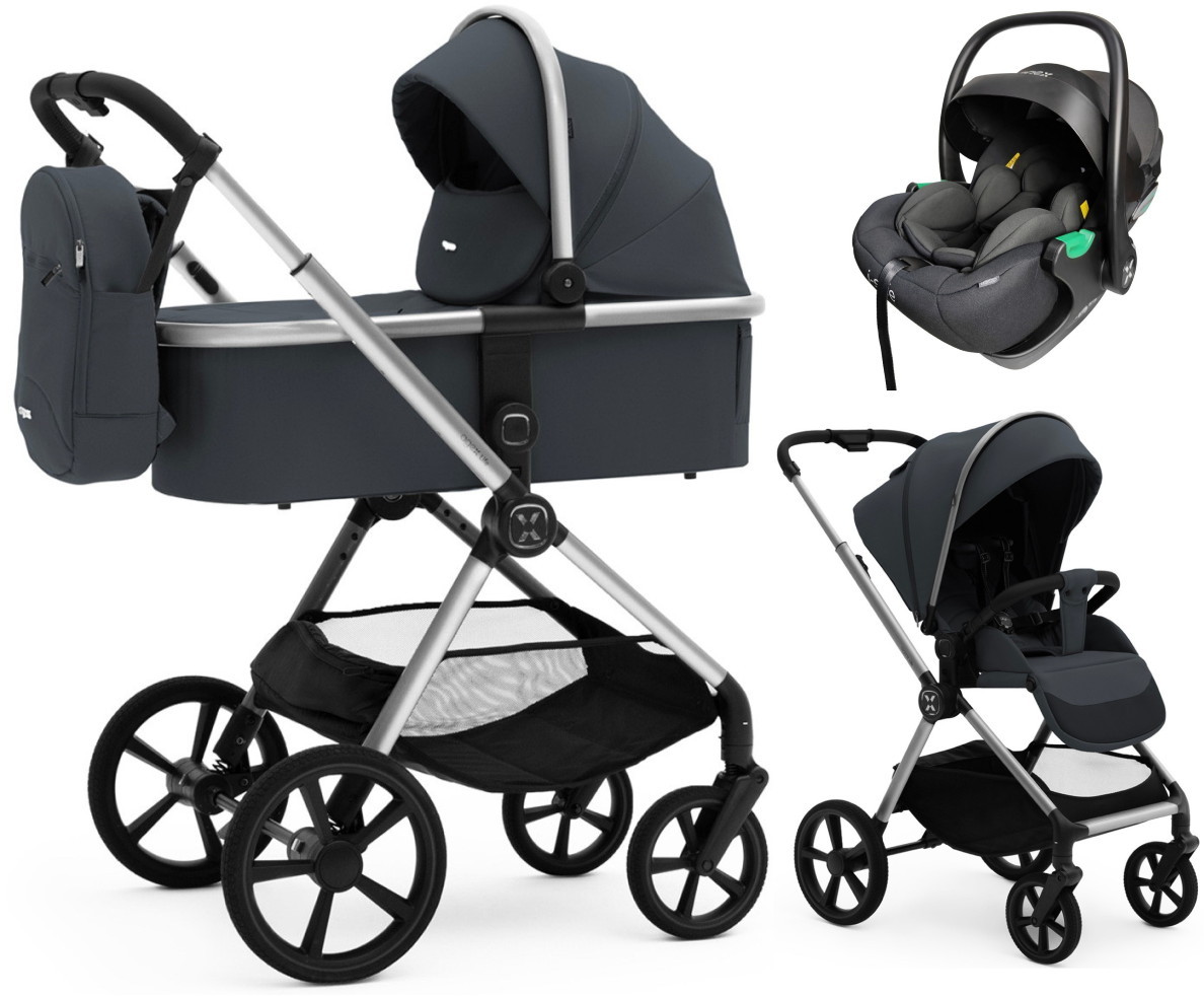 Коляска Agex Life 3 в 1 хромированная рама с автокреслом i-Safe S Black ALM606 Midnight Grey (Темно-серый)
