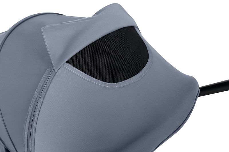 Особенность прогулочного блока коляски Agex Play — большой капюшон, который закрывает малыша до ног в сидячем положении. Ребёнок защищён от дождя и ветра. Чтобы полностью закрыть малыша, нужно максимально раскрыть капюшон. Для удобства наблюдения за малышом предусмотрено смотровое окно со шторкой на магнитах.