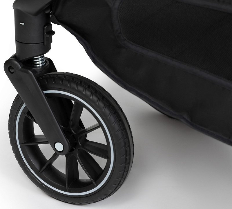 Прочные и большие колёса обеспечивают отличное сцепление с поверхностью, позволяя легко преодолевать различные дорожные препятствия. Мягкие резиновые покрышки гарантируют комфорт для малыша даже на неровной дороге благодаря пружинной амортизации на каждом колесе.