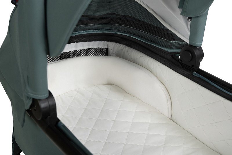 Одно из главных преимуществ люльки Agex Play — её установка на шасси. Она находится достаточно высоко, поэтому маме не придётся наклоняться, чтобы положить или взять малыша. Это особенно важно в первые недели и месяцы после рождения ребёнка. Внутри люльки утеплённые стенки, которые не пропускают ветер. Все материалы легко снимаются для стирки при необходимости. Ортопедический матрас с хорошей толщиной поддерживает голову, шею и спину малыша в правильном положении.
