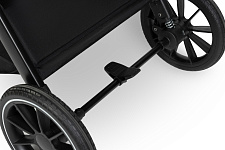 Удобная ручка Agex Play обтянута мягкой и приятной на ощупь экокожей, а по центру расположена кнопка для регулировки высоты. Нажав на неё, вы сможете настроить высоту ручки под свой рост. По бокам ручки находятся крючки для сумки, которая идёт в комплекте с коляской.