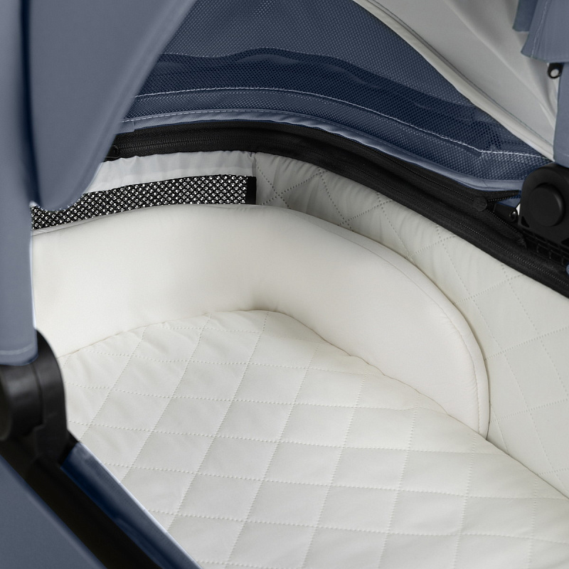 Одно из главных преимуществ люльки Agex Play — её установка на шасси. Она находится достаточно высоко, поэтому маме не придётся наклоняться, чтобы положить или взять малыша. Это особенно важно в первые недели и месяцы после рождения ребёнка. Внутри люльки утеплённые стенки, которые не пропускают ветер. Все материалы легко снимаются для стирки при необходимости. Ортопедический матрас с хорошей толщиной поддерживает голову, шею и спину малыша в правильном положении.
