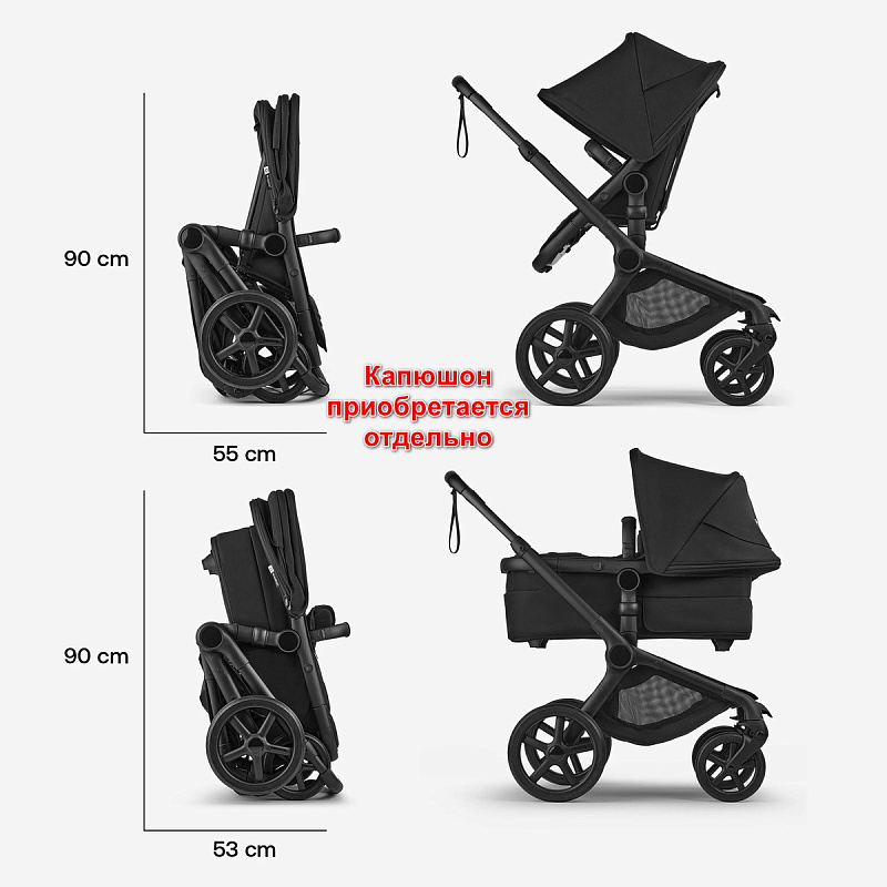 Коляска без капюшона Bugaboo Fox 5 Renew base 2 в 1 Black/Heritage Black